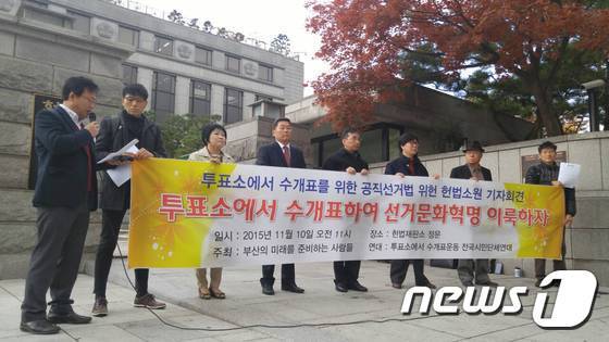 시민단체(지난해 11월) 투표지 분류기에 문제가 있으니 투표소 수개표 하자고 헌법소원을 냄